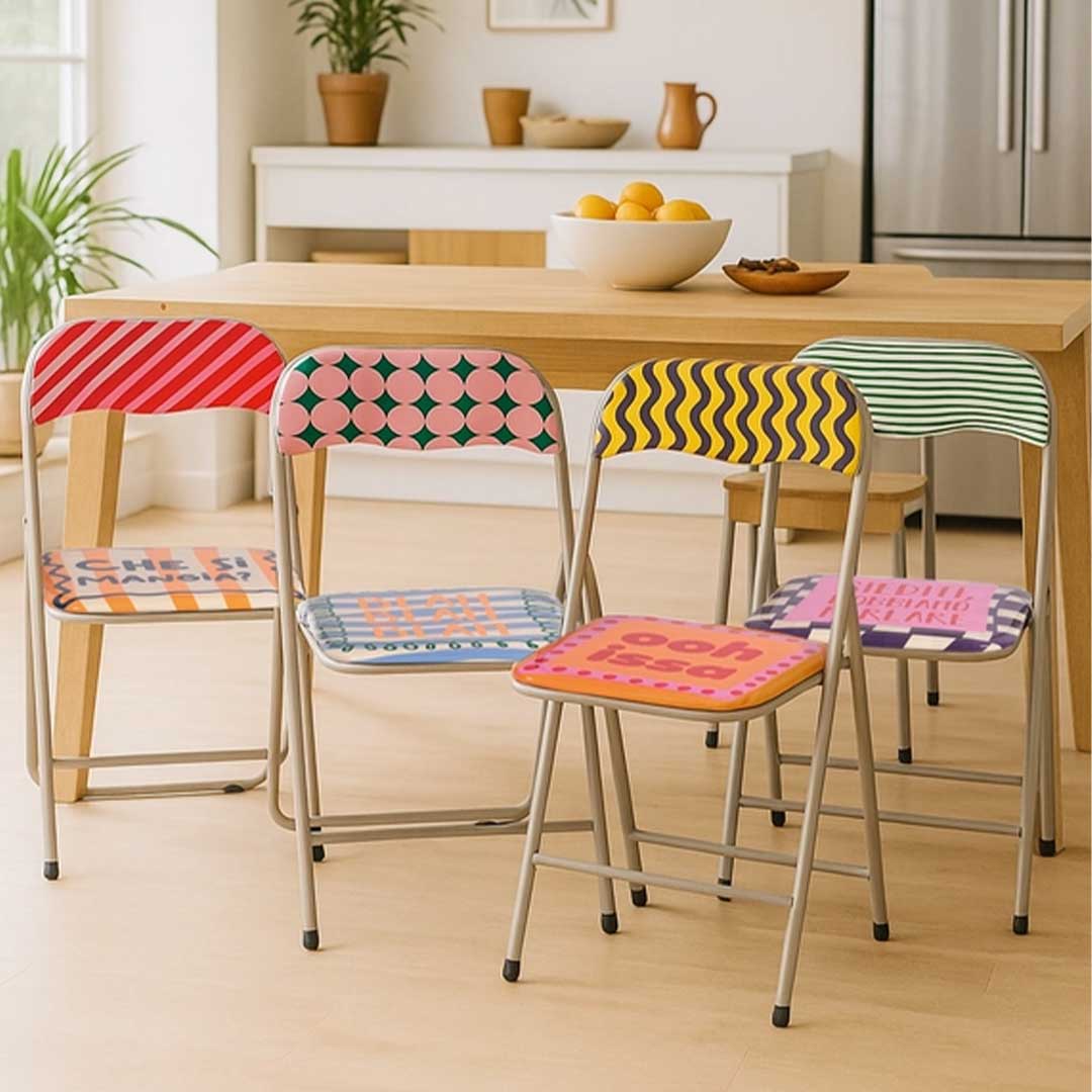 Hai ospiti a casa? Cosa c'è di più comodo di una sedia pieghevole imbottita da tirare fuori all'occasione? E se poi la sedia, oltre a essere comoda, è anche colorata e divertente, chi se ne va più?