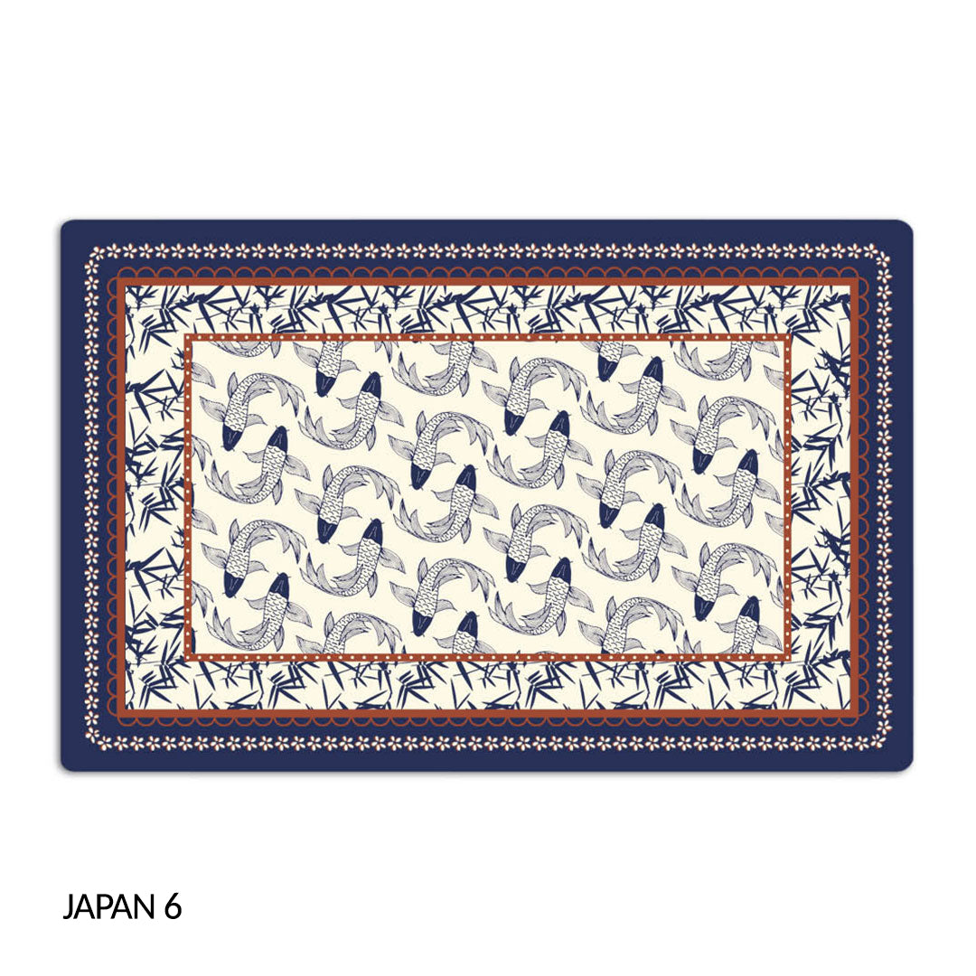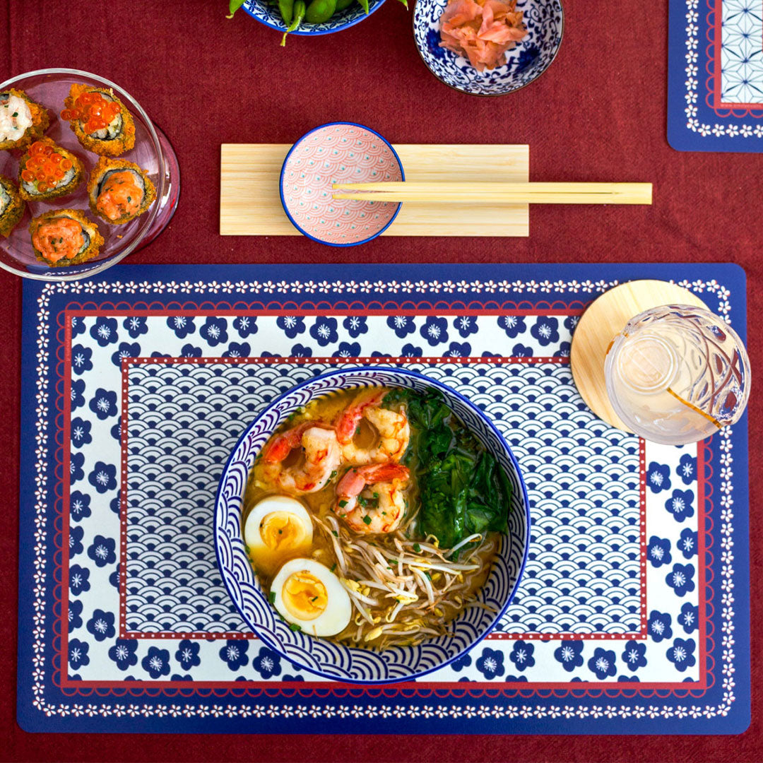 Per le tovagliette Japan Emily prende ispirazione dalle forme semplici e i colori eleganti tipici dei pattern Giapponesi. Le tovagliette giapponesi in PVC di Emily Evans sono ideali per decorare con calore e personalità la tua tavola senza dover rinunciare alla praticità: grazie al materiale antimacchia non trattengono lo sporco e basta una passata di spugna per farle risplendere. Un perfetto equilibrio tra bellezza e funzionalità.